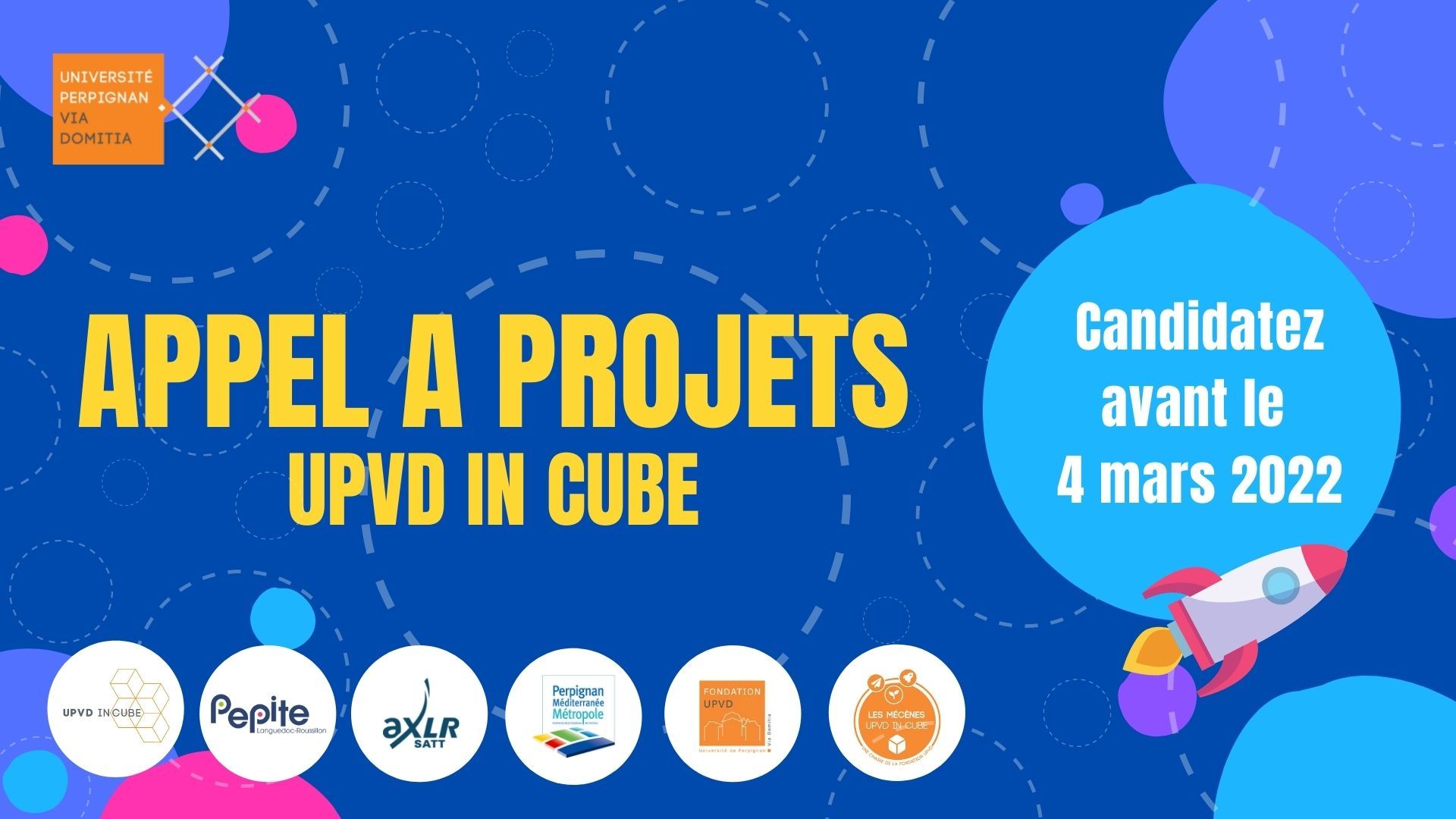 UPVD IN CUBE lance son 4ème Appel à Projets, l'édition 2022, ouvert à tous les porteurs de projets innovants du territoire. Rejoignez UPVD IN CUBE et faites décoller votre projet d'entreprise !