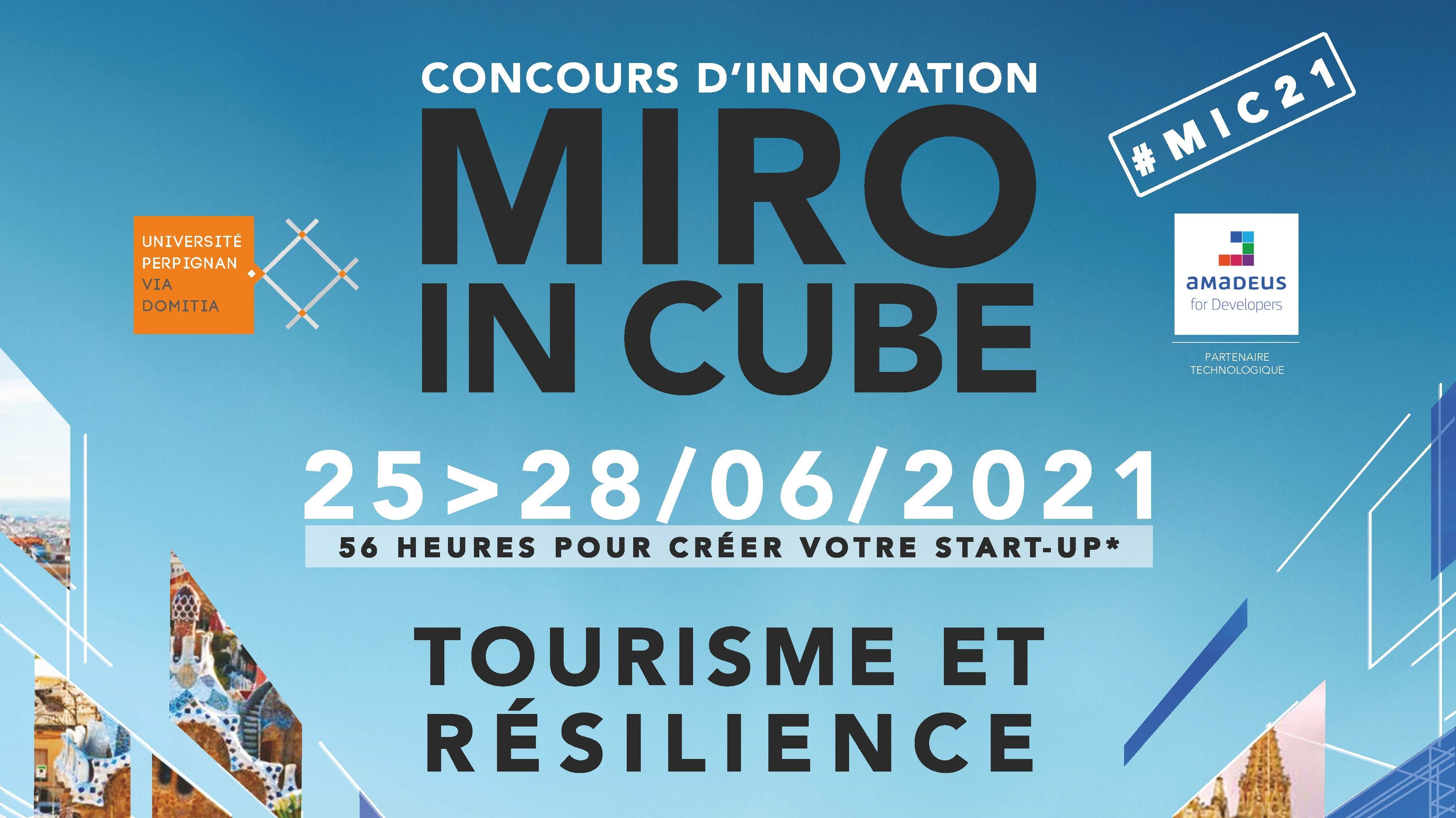 Le lundi 03 mai dernier était officiellement lancée ma quatrième édition du hackathon MIRO IN CUBE, le concours d’innovation à portée eurorégionale dans le domaine du m-tourisme, 56H00 pour développer son idée, la pitcher et la transformer en projet d’entreprises ! Le thème de cette édition 2021 : Tourisme et résilience ! Du 25 au 2 juin prochain, en simultanée sur PERPIGNAN, BARCELONE et PALMA, les participants se lanceront le challenge de développer une offre de produit ou de service en lien avec les problématiques actuelles du monde du tourisme et de nos territoires.